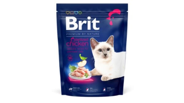 Η Brit Premium Sterilized Chicken είναι μια πλήρης και ισορροπημένη τροφή με 38% κοτόπουλο, ειδικά σχεδιασμένη για τις διατροφικές ανάγκες των στειρωμένων γατών. Υποστηρίζει την υγεία του ουροποιητικού συστήματος, συμβάλλει σε υγιές δέρμα και λαμπερό τρίχωμα, ενώ η ταυρίνη ενισχύει τη σωστή λειτουργία της καρδιάς και των ματιών.