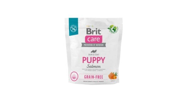 Πλήρης τροφή χωρίς δημητριακά με σολομό και πατάτα, ιδανική για κουτάβια και νεαρούς σκύλους όλων των φυλών (4 εβδομάδες – 12 μήνες). Υποστηρίζει την υγιή ανάπτυξη, το ανοσοποιητικό σύστημα, και προάγει υγιές δέρμα και τρίχωμα.